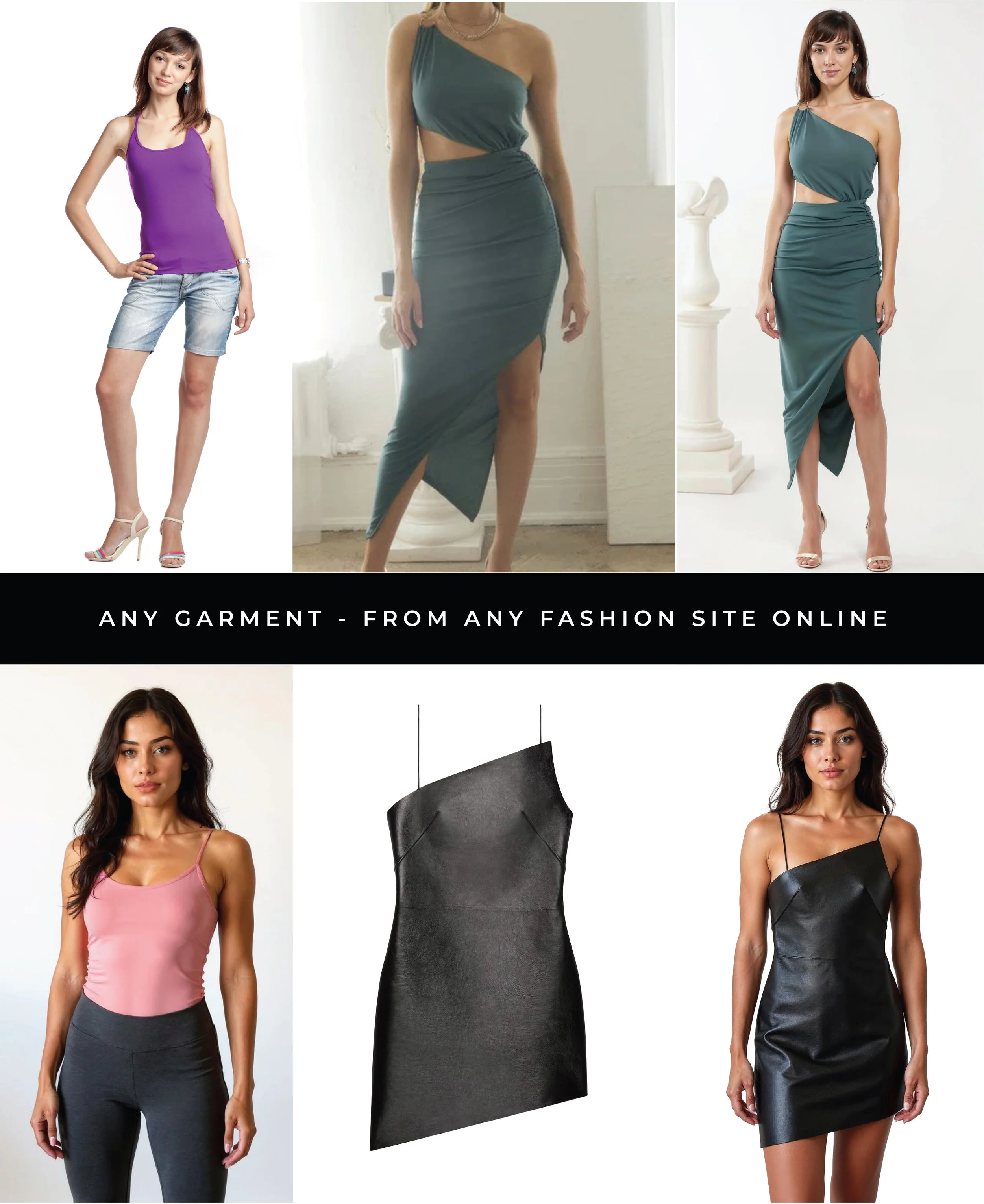 Just send us the links of the garments that you want to see on YOUR BODY, and within 48 hours you’ll receive 10 second videos of you in those garments. See if that perfect outfit fits your body, your color tone, your hairstyle, your personality.